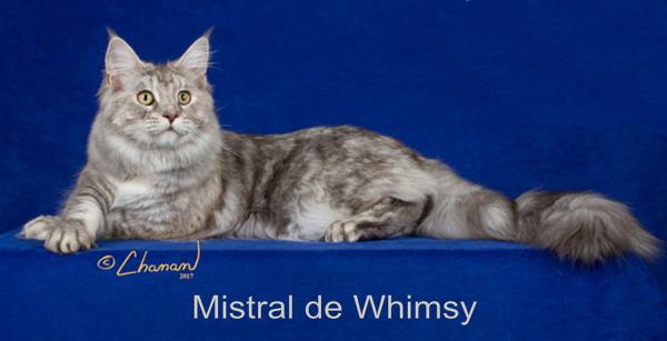 | Regional Winner, Grand Champion Bounding Maines Mistral de Whimsy of Coon Mountain |