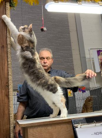 | 2018 & 2019 Regional Winner Supreme Grand Champion Koontyme Madeleine We thank Dawn Hunt of Koontyme in Indiana for this stunning girl. She is delightful and a hopeless flirt. The Judges love her, sooo much purrsonality. |